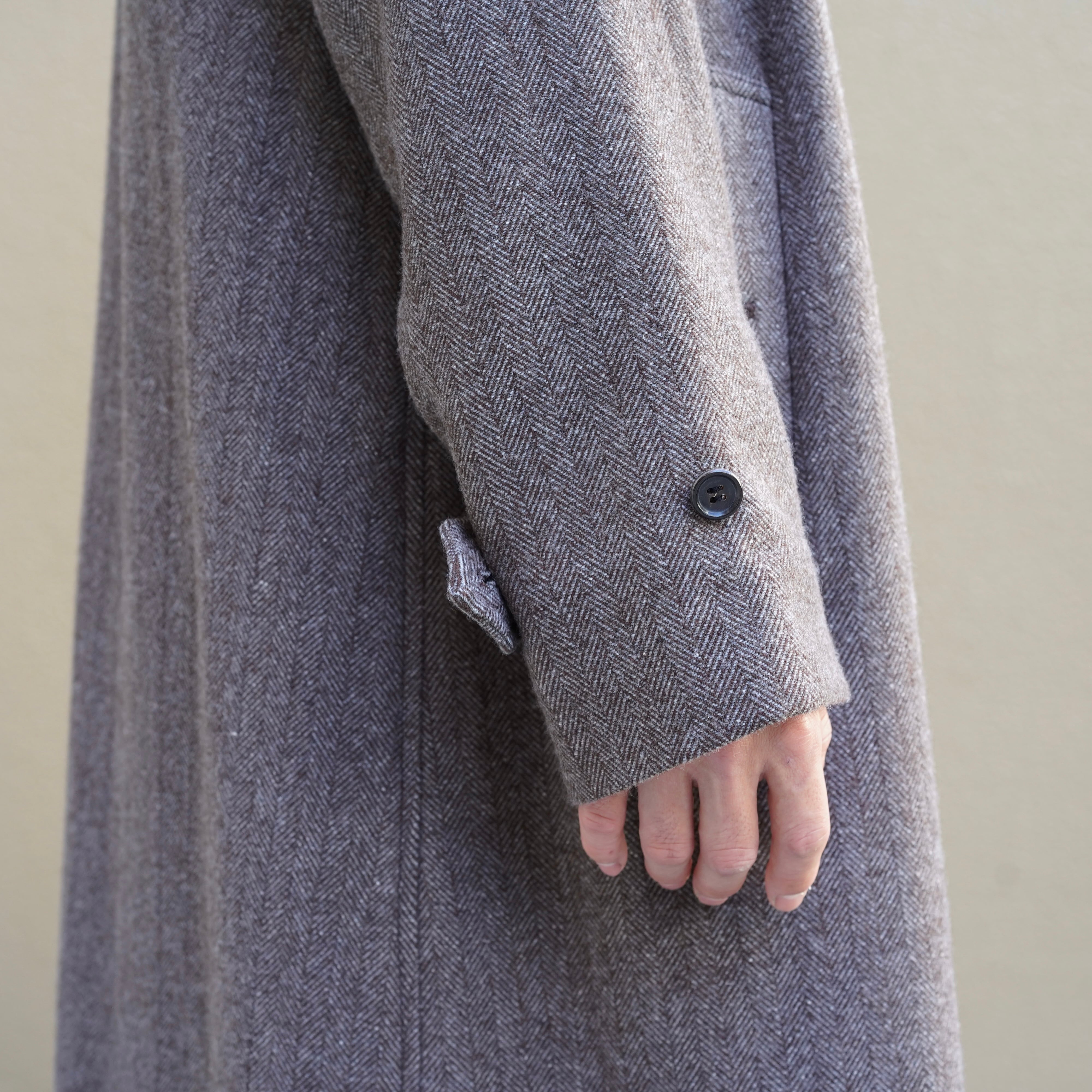 生地には上質なウールとカシミヤとシルクの混紡糸をヘリンボーンを使用したクラシカルな印象の生地感になります。